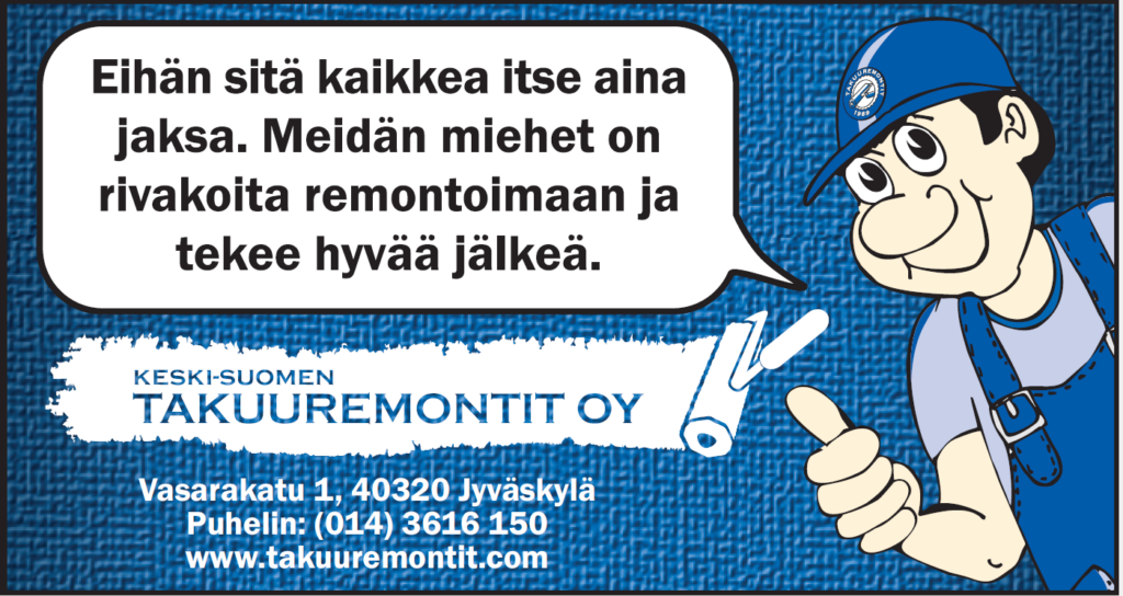 Toiminta-alueenamme on edelleen Keski-Suomi, pääpaino on Jyvässeudulla. Tavarantoimitus- ja logistiikkaketjut sekä remonttijätteen kierrätys on valjastettu palvelemaan toiminta-alueellamme. Näin remontin tekemistä saadaan sujuvaa ja kustannustehokasta. Myös työntekijämme ovat arvostaneet sitä, että työmme ei ole yhtä reissaamista – illaksi kotiin, kuten sanonta kuuluu.
